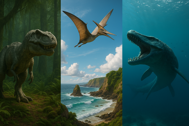 一、消失的霸主:那一夜,恐龙为何突然灭绝? 6600万年前,一场全球级的灾难改写了地球的生命史。曾经称霸陆海空的恐龙王朝,在短时间内突然覆灭,仿佛被神秘力量抹去了存在。 许多人熟知的说法是“陨石撞击灭绝说”,但近年来,科学研究揭示:这场灾难远不止一颗陨石那么简单。恐龙的灭绝,是一连串天灾地变与生态崩塌的“组合拳”。 二、黄金时代:恐龙王朝的顶峰时刻 在白垩纪末期,地球气候温暖如春,极地无冰,大片陆地被浅海覆盖。恐龙分布广泛,种类繁多: 陆地上有体型庞大的霸王龙、三角龙; 天空中翼龙翱翔,掠过林...